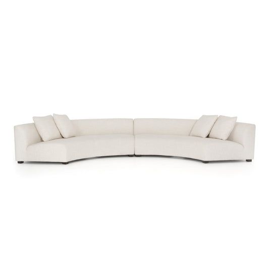 Eye-catching at every curve. A sophisticated take on sleek Italian design, cream linen-blend upholstery fashions an elongated crescent, bringing shapely effect to the modular sectional. Pieces can be positioned to form a large or small crescent, granting options to suit a space.